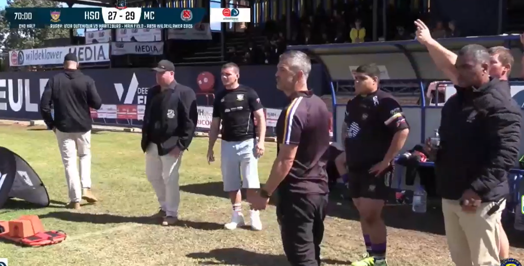 Following the penalty award, Olivier was visible on the sidelines with his coaching staff. On the field, the Outeniqua captain indicated a shot at goal, with scrumhalf Fagen Hendricks appearing set to take the kick. Yet, after a replay sequence had run, Olivier was shown lining up and ultimately taking the decisive shot.